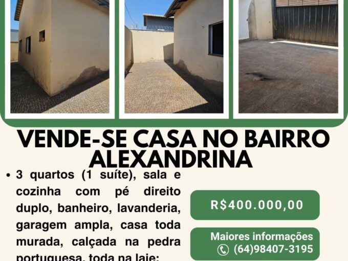 VENDE-SE CASA NO BAIRRO ALEXANDRINA Casa com: 3 quartos (1…