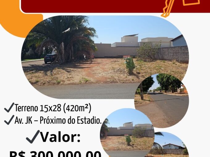 VENDE-SE TERRENO DE ESQUINA NA AV. JK. Terreno 15×28 (420m²)…