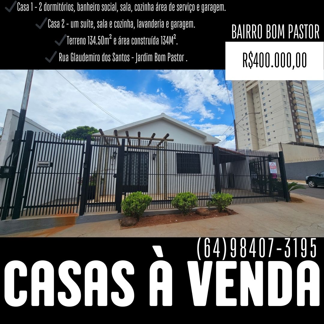 VENDE-SE 2 CASAS NO BAIRRO JARDIM BOM PASTOR.