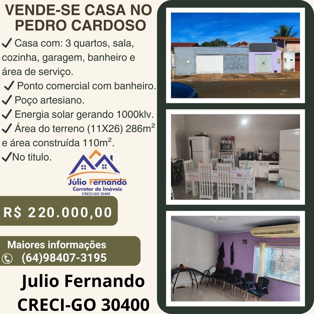 VENDE-SE CASA NO BAIRRO PEDRO CARDOSO – 220 MIL REAIS