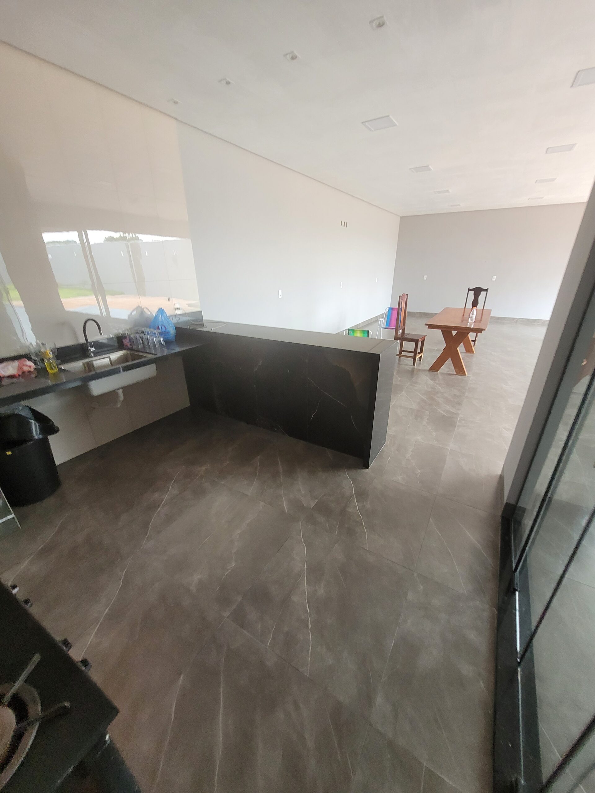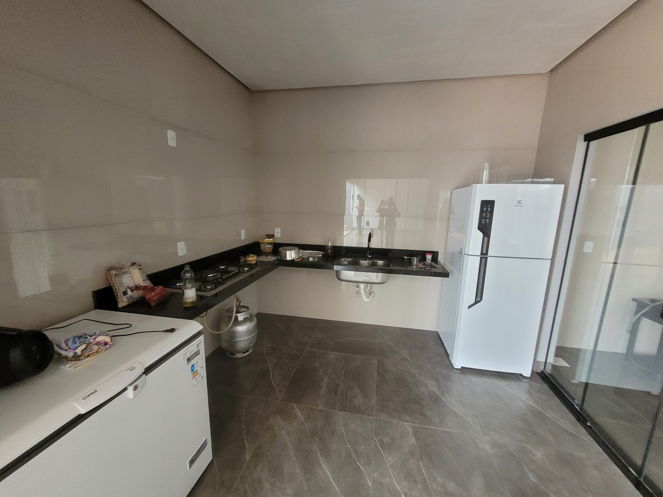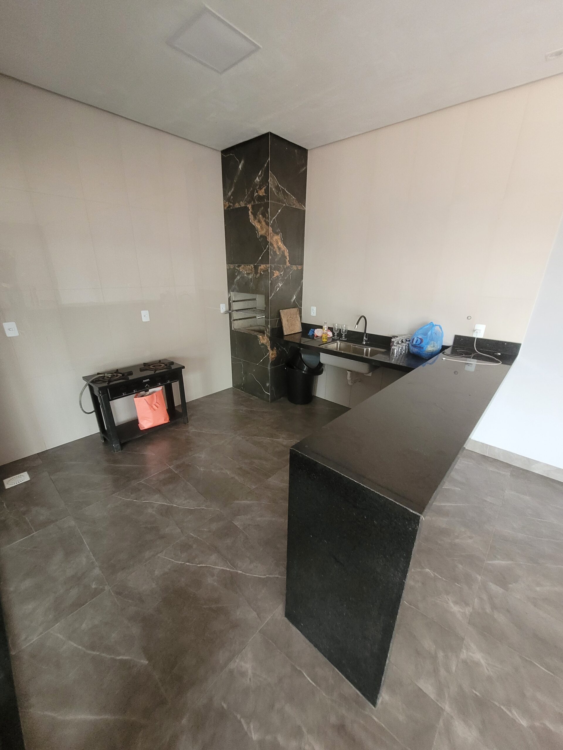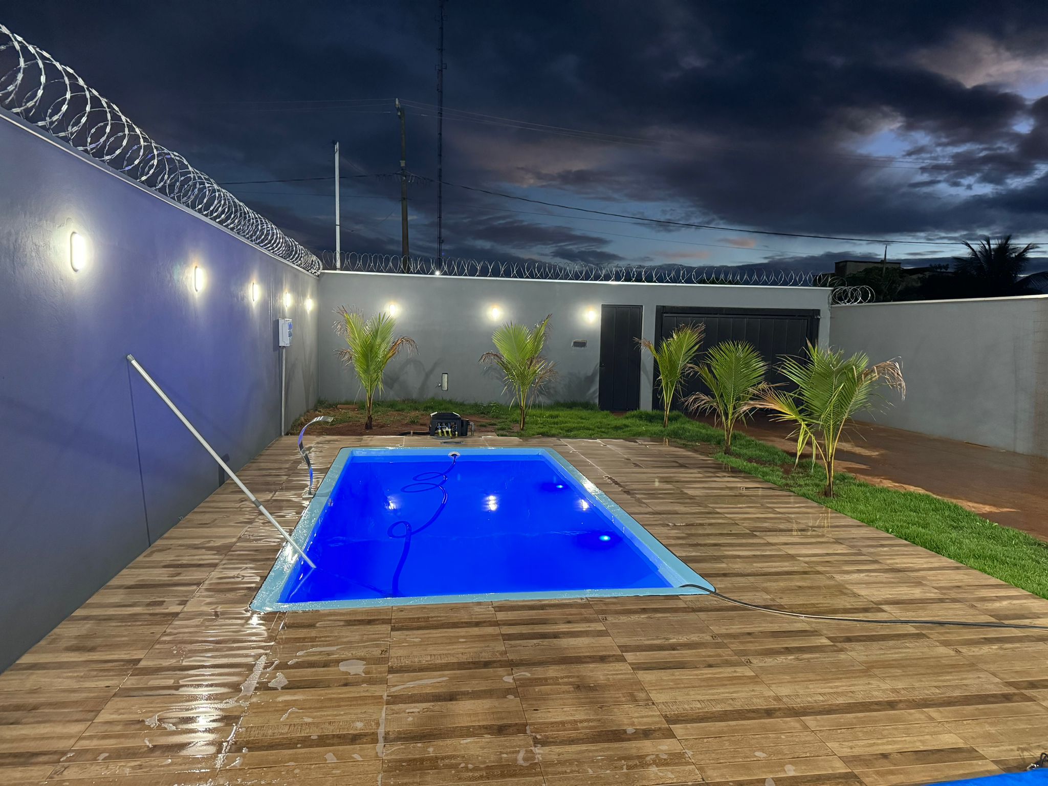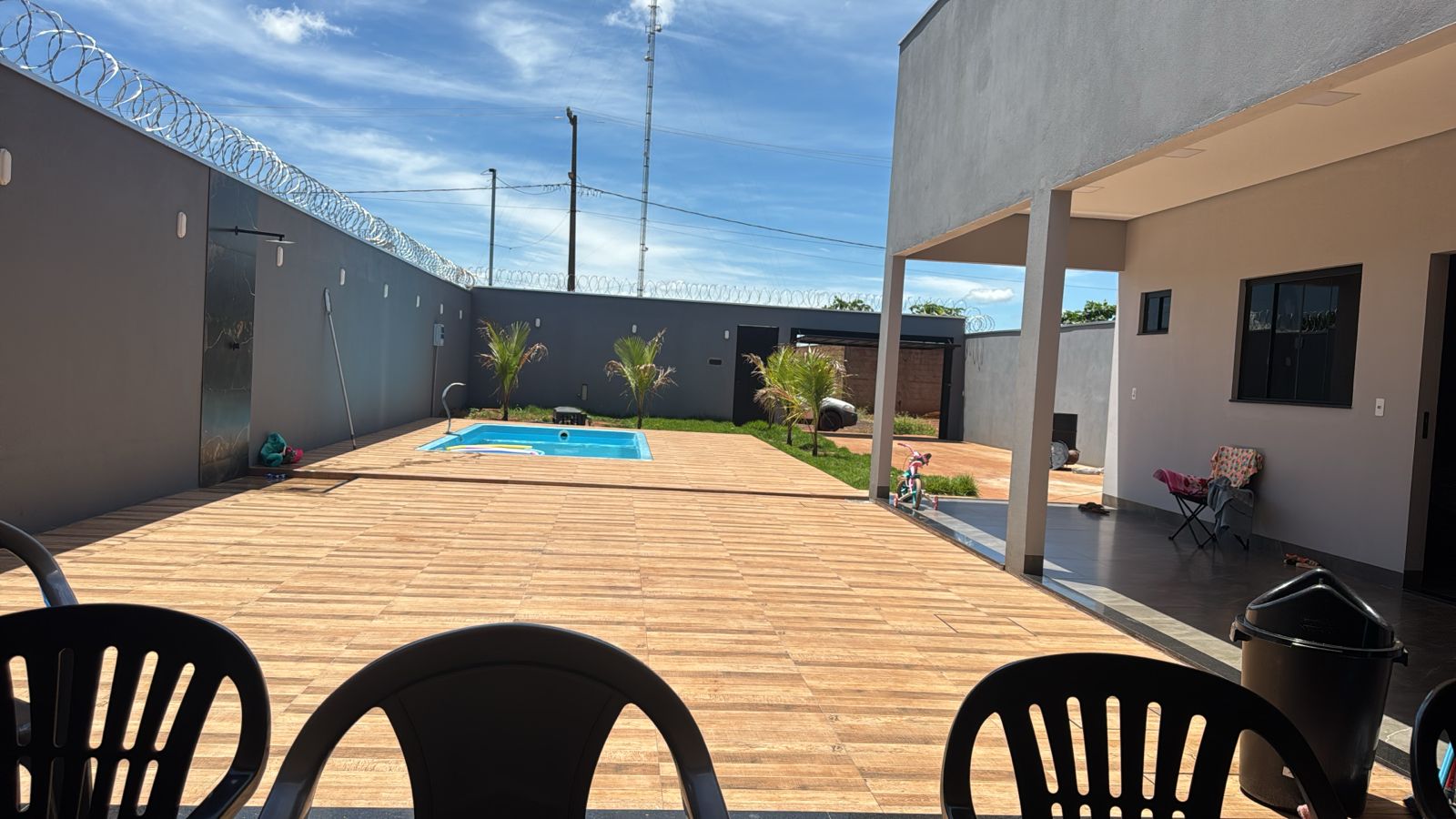 1 suíte, 2 banheiros, cozinha, piscina e área de lazer com churrasqueira.