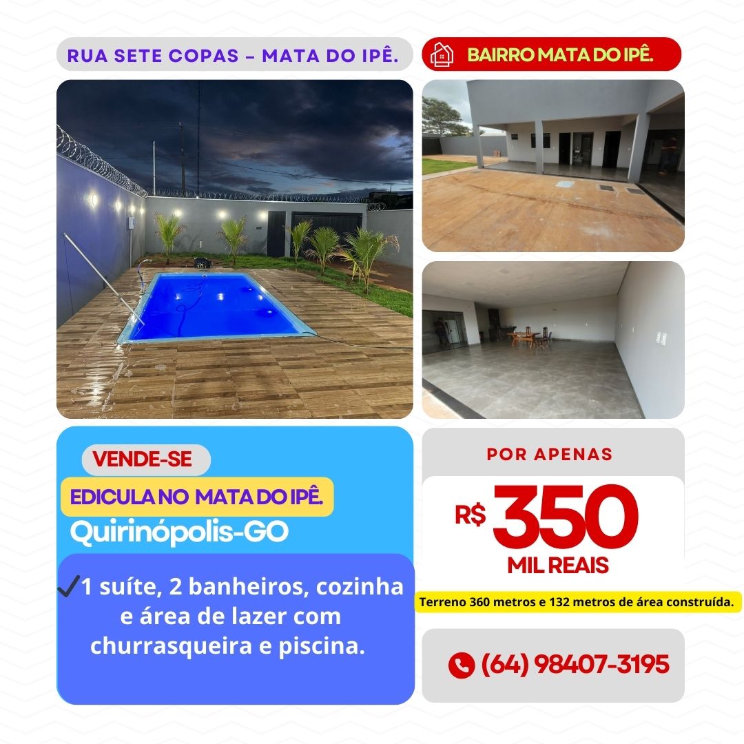VENDE-SE EDICULA NO BAIRRO MATA DO IPÊ.