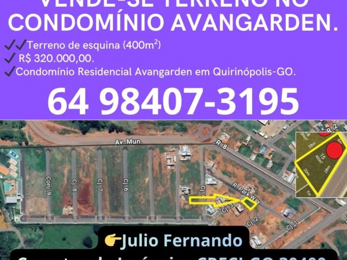 VENDE-SE TERRENO NO CONDOMÍNIO AVANGARDEN. Terreno de esquina (400m²) R$…