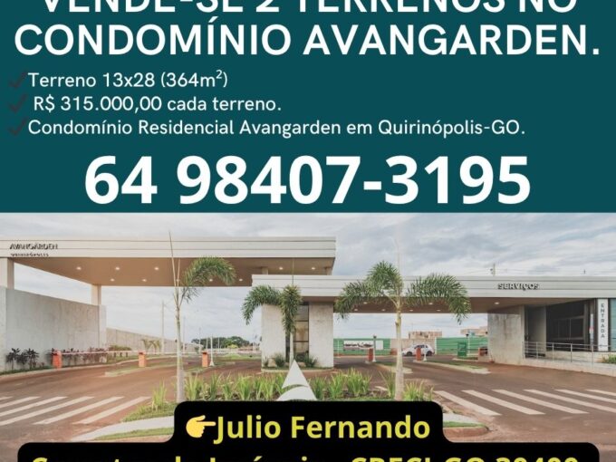 VENDE-SE 2 TERRENOS NO CONDOMÍNIO AVANGARDEN. Terreno 13×28 (364m²) R$…